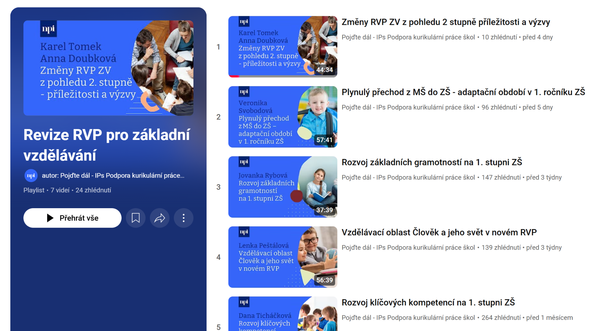 Záznamy webinářů k jednotlivým částem RVP (NPI)